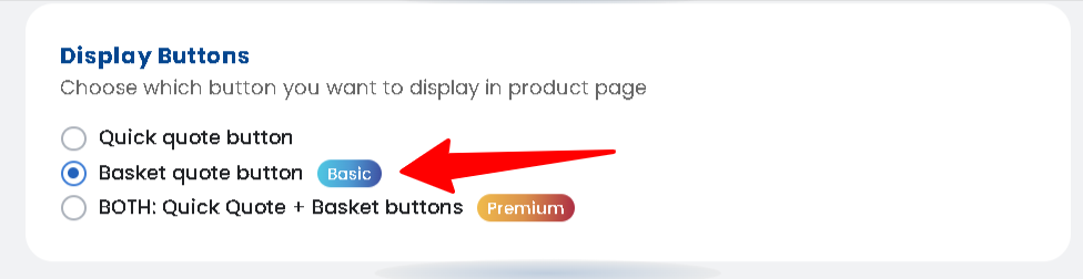 This is where you can control how the Request Quote button will appear across your store. - Select the Basket Button Option: