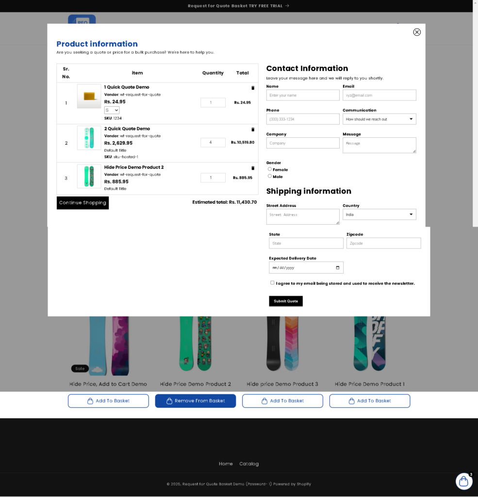This customizable approach makes it easier for you to align the quote form with your store’s aesthetic while offering your customers a smooth and personalised quote request experience.
