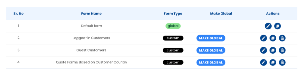 - If the customer does not match these conditions, the Global (default) quote form is shown instead.