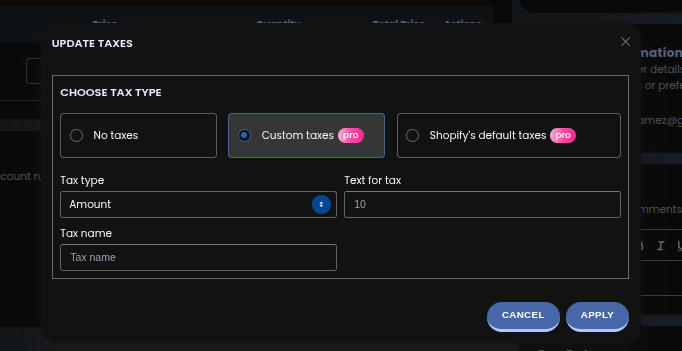 This gives you full flexibility — you can either use your store’s default Shopify taxes or set your own custom rates for specific quotes.
