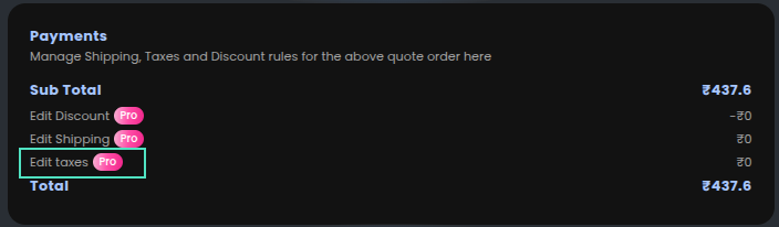 We know how important accurate tax calculations are when preparing quotes. With the new Edit Taxes module (available in the PRO plan), you can now control taxes directly while creating or editing quotes. This gives you full flexibility to include or exclude taxes, view detailed breakdowns, and keep your quotes transparent and accurate.