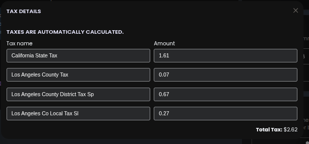 - Click Tax Details to view a complete breakdown of each applied tax.