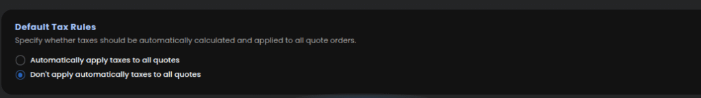 - Custom Taxes – Allows you to manually set a custom tax amount or percentage for individual quotes.