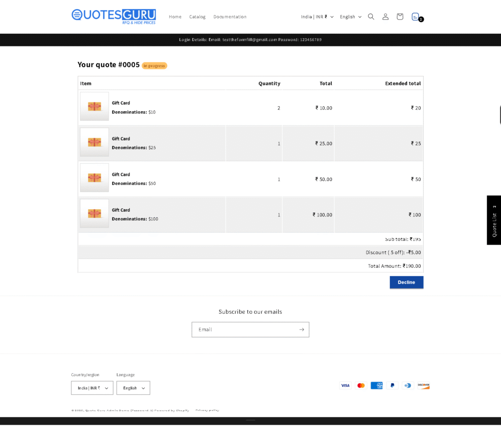 Marchent sent the quick link to the Customer so they can directly see all their quote by this quick quote link.
