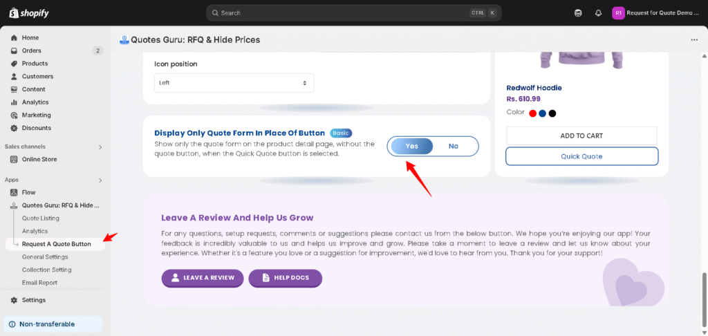 In this guide, you’ll learn how to enable the “Show Only the Quote Form” option in the Quotes Guru app and make it even easier for customers to request a quote directly from your Shopify store.