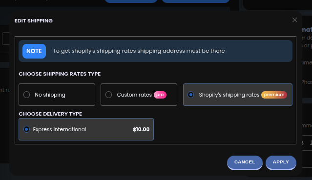 - Shopify’s Shipping Rates – Automatically fetches and applies your store’s default Shopify shipping rates to the quote.