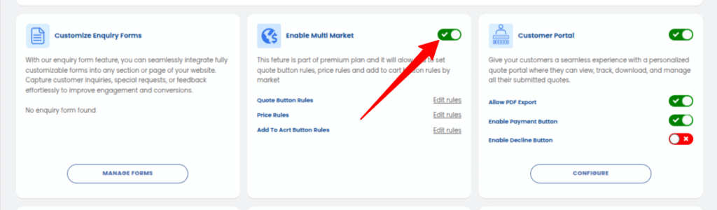 - After enabling, the system activates market-based rule options inside your Rule Settings pages.