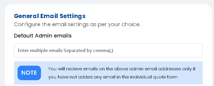 If no emails are entered in either location, the system will send the quote to a default admin email found in the database.