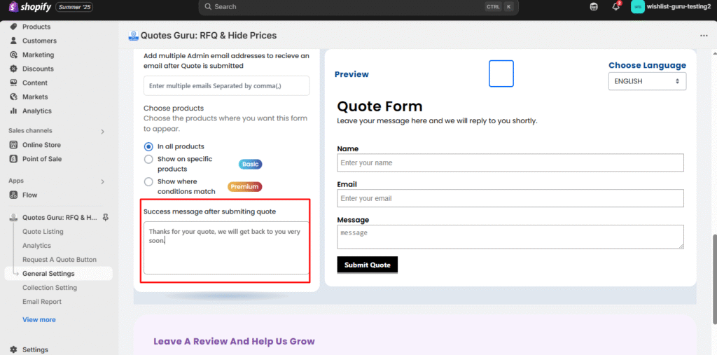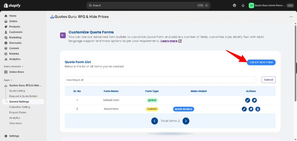 The Multiple Forms feature in the Quotes Guru app enables merchants to create and assign different quote request forms to products based on specific requirements. This feature is available starting from the Pro Plan and is ideal for stores that need to collect unique data for different types of products.