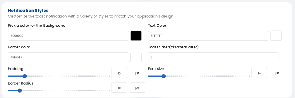 - Toast timer – Control how long (in seconds) the notification remains visible