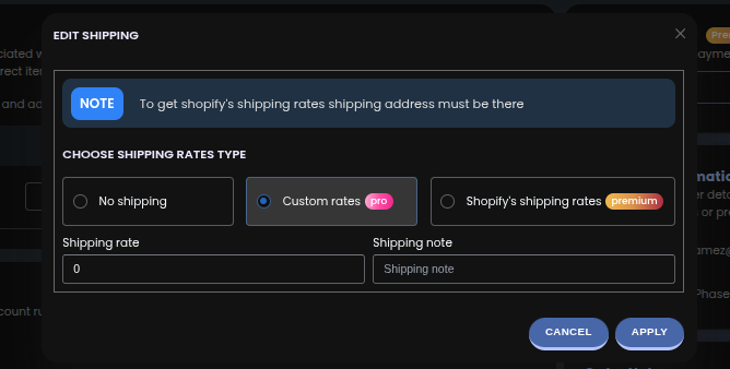 Quotes Guru gives you flexible shipping options when creating quotes, allowing you to apply no shipping, custom shipping charges, or Shopify’s automatic shipping rates. This helps you control costs, match real shipping scenarios, and avoid surprises for your customers.