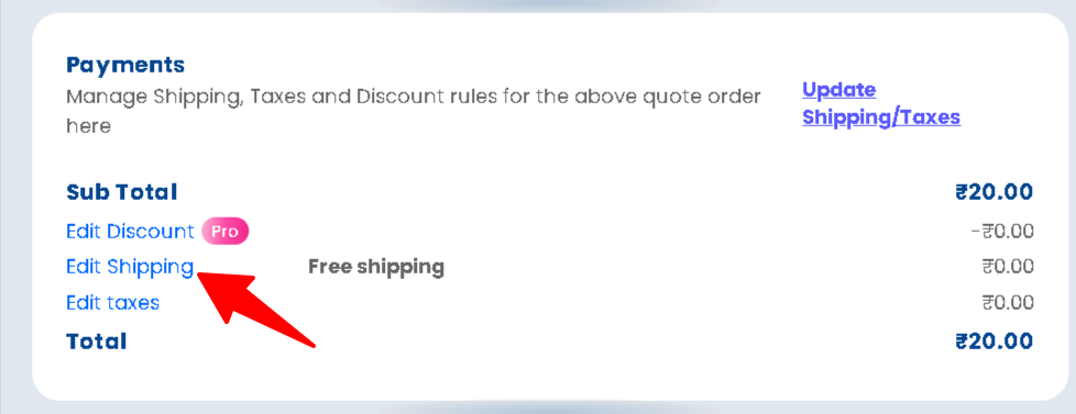 - Custom Shipping – Allows you to manually set a shipping rate for each individual quote.
